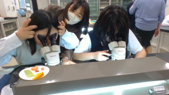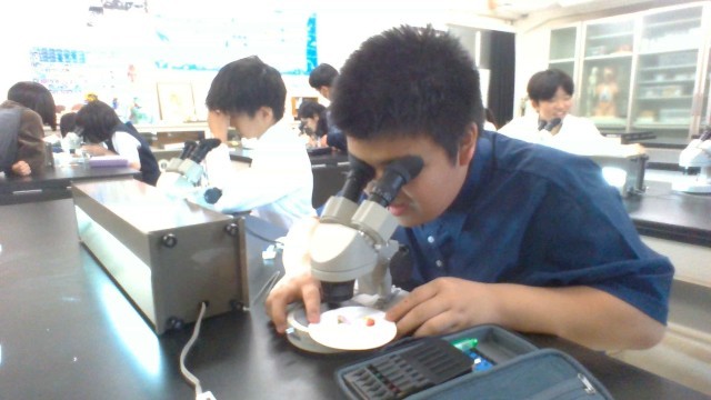 甘い匂いに誘われて、理科室に辿り着いたら、真剣に顕微鏡をのぞいて何やら観察しているⅠ組の生徒の姿がありました