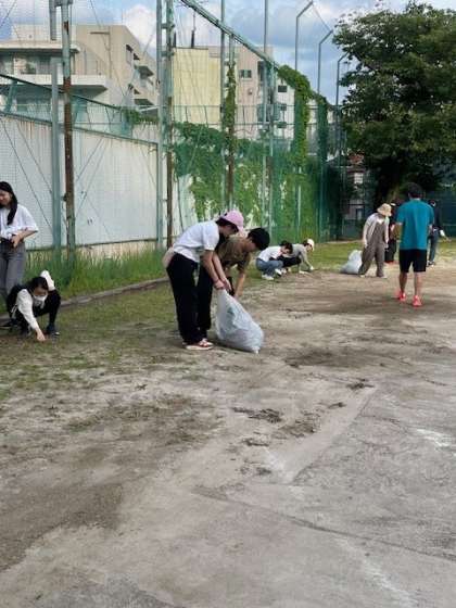推進員の他、生徒・保護者総勢30人以上の方が集まり、トラックの雑草を中心に作業をしました。はじめは日差しも強めでしたが、休憩の水分補給をはさんで再開したころには、日も陰り作業が更にはかどりました。