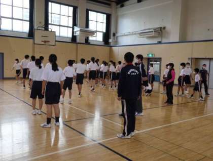 10月1日(木)結団式 公開日 2020/10/02 更新日 2020/10/02 お知らせ 昼休みには、久しぶりに全校生徒が体育館に集合して、運動会の結団式が行われました。応援団長の指示のもと、運動会に向けての心構えなどについて話がありました。新型コロナウイルス感染防止をしっかり行い、新たな形の運動会を一人一人の力を結集して、作っていきましょう。