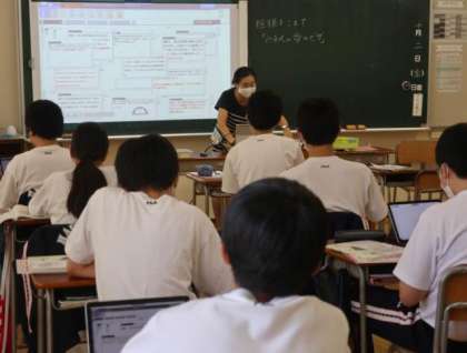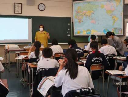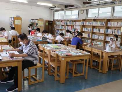 5時間目には、I組は図書室で静かに読書をしていました。1年生は社会科の授業をミライシードを使って行っていました。2年生は道徳をTeamsとミライシードを使って、分割クラスで行う実験的授業を行っていました。3年生はグループに分かれ、タブレットを使用して修学旅行の班別行動の計画に取り組んでいました。