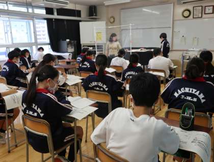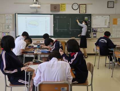 本日は雲が広がり、湿度もやや高い気候となっています。3時間目には、1年生は音楽、2年生は体育、3年生は理科の授業をしていました。I組は、数学の授業です。