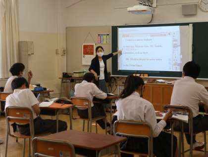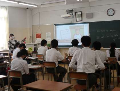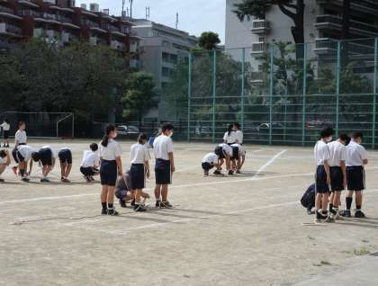 2年生は英語、3年生はI組と合同で運動会の学年種目の練習をしていました。