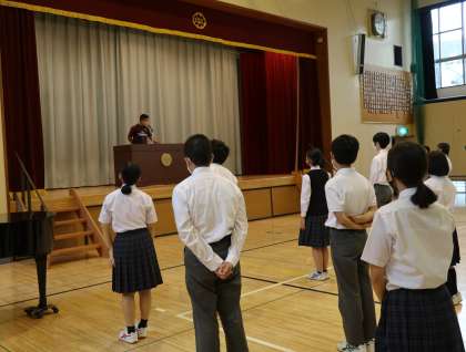 5時間目には、体育館に全校生徒が集合し、終業式が行われました。私の方からの話、生活指導主任からの話、校歌を歌い、前期を締めくくりました。