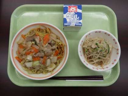 本日のメニューは、あんかけ焼きそば、華風もやしでした。