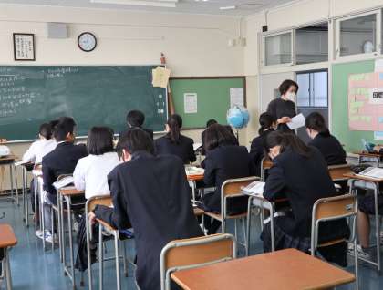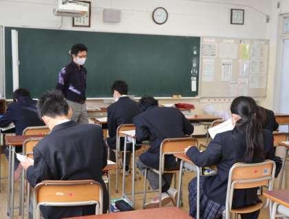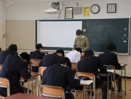 2年生は数学、3年生は社会の授業をしていました。数学では、小テストをしているところでした。中間考査に向けて、がんばりましょう。