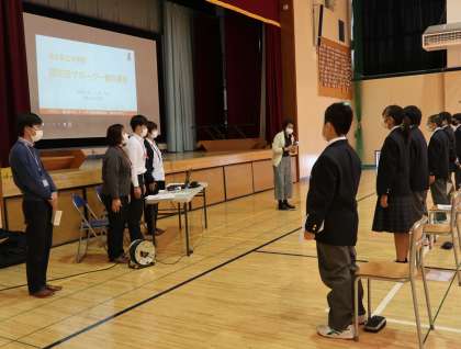 6時間目に1年生は「認知症サポート講座」を体育館で受講しました。認知症についての理解を深め、中学生としてできるサポートについて学習しました。