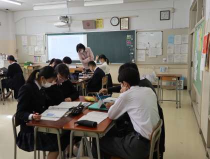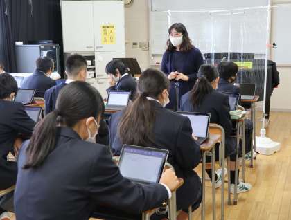 1年生は、タブレットを使っての音楽の授業をしていました。2年生は、都の学習状況調査の問題に取り組んでいました。3年生は、理科の授業をタブレットを使用して、班でまとめる学習をしているところでした。