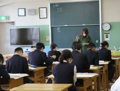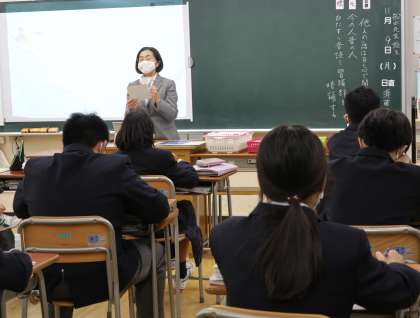 1年生は国語、2年生は引き続きテスト、3年生は美術の授業をしていました。1年生は、竹取物語を学習していきます。