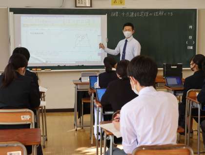 本日も朝は気温が低く寒く感じられましたが、陽射しが強くだんだん気温も上がってきています。1時間目には、3年生の数学の授業を1時間観ました。前半に復習をして、新しい課題に取り組んでいきました。