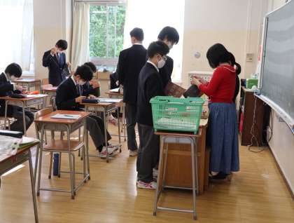 11月11日(水)2時間目の風景二 公開日 2020/11/11 更新日 2020/11/11 お知らせ 2年生は家庭、3年生は社会の授業をしていました。社会は公民的分野で、民主制について学習していました。