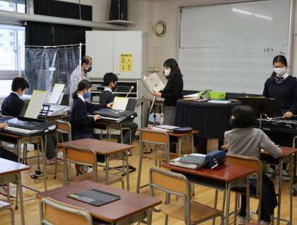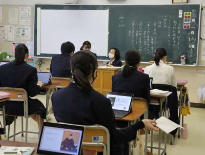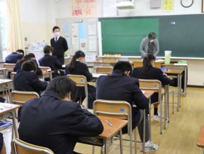 本日は朝から陽射しがなく気温は低くなっています。1時間目には、I組は音楽、1年生は数学、3年生は国語の授業をしていました。本日も2年生は職場体験学習のため、各職場で体験学習をしています。