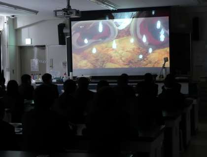 4時間目には、I組は美術、1年生は理科、3年生は男女共修で校庭でサッカーの授業をしていました。1年生の理科は動画を見ているところで、真っ暗でした。