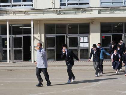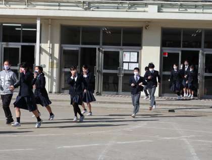 昼休みが始まってしばらくして、突然の避難訓練が開始されました。今回は昼休みに生徒がバラバラな場所にいる時にいかに速やかに避難できるかという訓練です。校庭で遊んでいる生徒は速やかに避難していました。教室にいた生徒も随時避難してきました。
