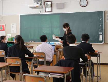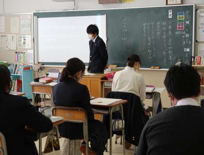 同じく2時間目には、2年生は英語の授業をしていました。3年生は、万葉集と古今和歌集の中の自分の好きな和歌について、各自でまとめたものを、パワーポイントを使いながら発表しているところでした。