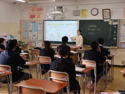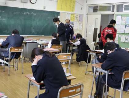 12月19日(土)土曜授業一 公開日 2020/12/19 更新日 2020/12/19 お知らせ 本日は、昨日よりは少し気温は高いようですが、北風が冷たいです。令和2年最後の土曜授業を実施しています。I組は国語、1年生は英語の授業をしていました。