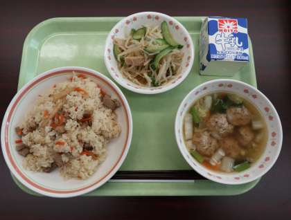 本日のメニューは、中華おこわ、華風もやし、肉団子スープでした。