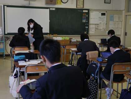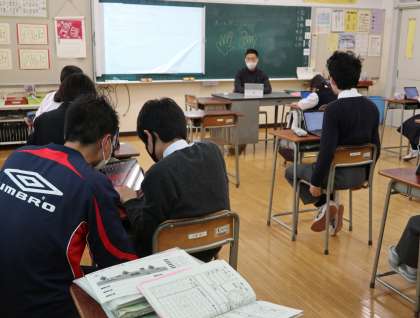 1月14日(木)6時間目の風景一 公開日 2021/01/14 更新日 2021/01/14 お知らせ 6時間目には、I組は作業の時間で各自タイピングの練習をしていました。3年生は、総合的な学習の時間で願書の確認や別会場で、面接練習などをしていました。