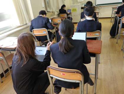 1月14日(木)6時間目の風景二 公開日 2021/01/14 更新日 2021/01/14 お知らせ 同じく6時間目には、総合的な学習の時間で、1年生は鎌倉の校外学習の概要を確認していました。2年生は都内巡りの計画をタブレットで調べながらまとめていました。いずれの校外学習も2月5日に予定されていたものを、緊急事態宣言の関係で、3月にずらしました。