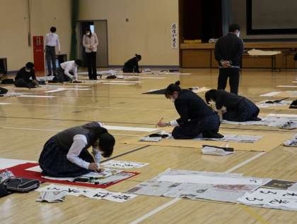 同じく6時間目には、3年生は書初め会を体育館で実施していました。各自が手本を見ながらしっかり書初めをしていました。今週はこれで終わりです。土・日としっかり休養を取ってください。緊急事態宣言が継続中ですから、不要不急の外出はせず、家で静かに過ごすようにしましょう。