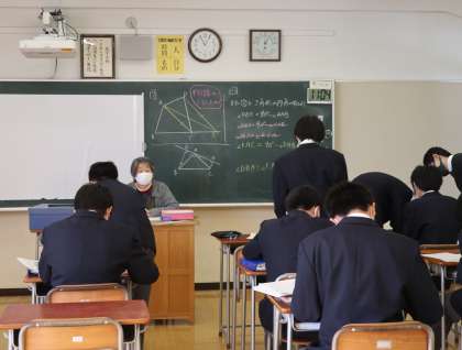 同じく3時間目には、2年生は数学、3年生は理科の授業をしていました。理科では、マークシート方式のテストに取り組んでいました。