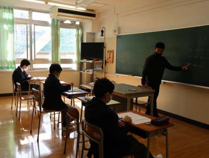 本日は冬晴れの天気ですが、気温は上がってきて過ごしやすく感じます。3時間目には、I組は数学の授業に取り組んでいました。