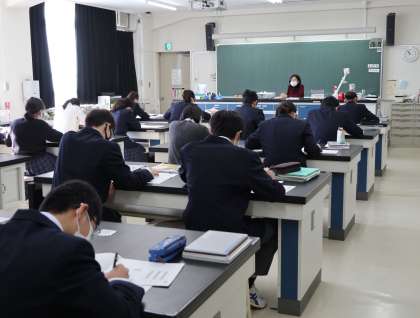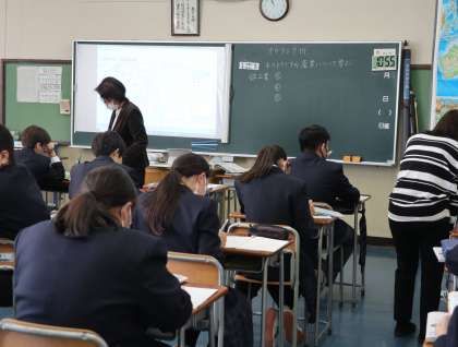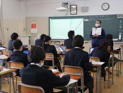 同じく3時間目には、1年生は社会、2年生は保健、3年生は理科の授業をしていました。2年生の保健では、災害から身を守ることについて、タブレットを使用して学習を進めていました。