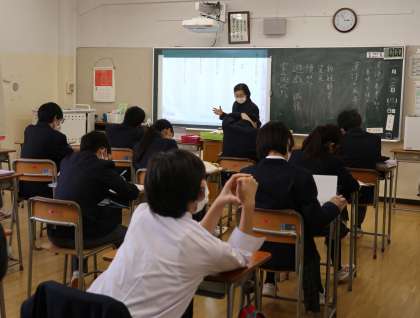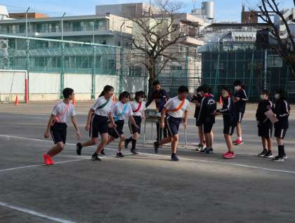 同じく6時間目には、2年生は国語、3年生は体育の授業をしていました。国語では、漢文を学習していました。3年生はチームに分かれて、駅伝を体験していました。