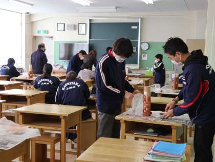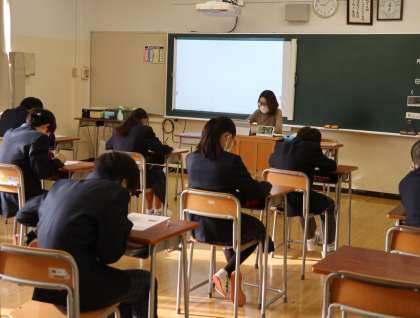 本日は朝は寒かったですが、雲に覆われた天気ながら気温は徐々に上がってきています。1時間目には、I組は美術の授業で粘土で作品を作っているところでした。1年生は英語の授業で、テストをしていました。