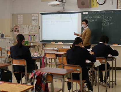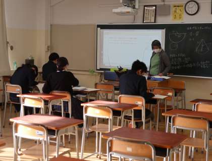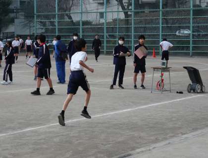 同じく1時間目には、2年生は体育で長距離走をしていました。3年生は数学の問題に取り組んでいるところでした。3年生は本日、都立推薦入試に何人かが挑戦しています。