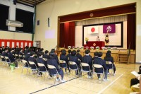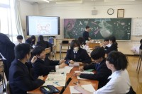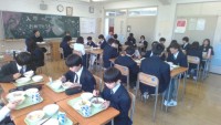本日は朝の気温は比較的高かったものの、午前中は雨模様の天気になっています。3時間目には、I組はALTとともに元気に英語の授業をしていました。1年生は、家庭の授業で栄養について学習していました。