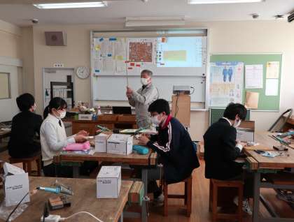 同じく1時間目には、2年生は理科、3年生は技術の授業をしていました。技術では先週に引き続き、ラジオの組み立てに取り組んでいました。本日は3時間目から5時間目まで、教育委員会の人が授業を見学に来ます。