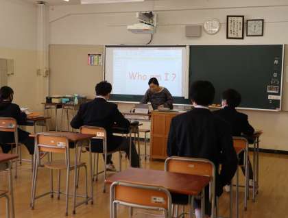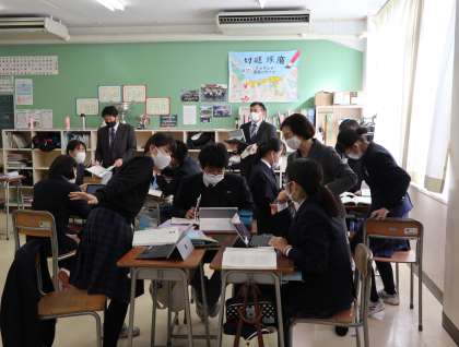 同じく4時間目には、2年生は英語、3年生は国語の授業をしていました。国語では、タブレットを使用して、班ごとの考えを全体に共有する形で授業が行われていました。