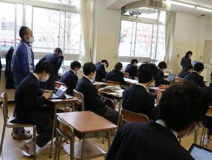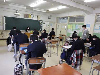 同じく1時間目には、2年生、3年生ともに学活の時間で、2年生は学習計画の作成、3年生は静かに各自自習をしていました。