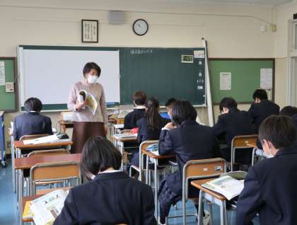 同じく3時間目には、1年生は社会の歴史的分野で源平の戦いについて学習していました。2年生は体育で駅伝競技について学習していました。3年生は理科で気象データの読み込みについて学習していました。