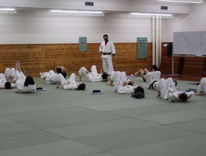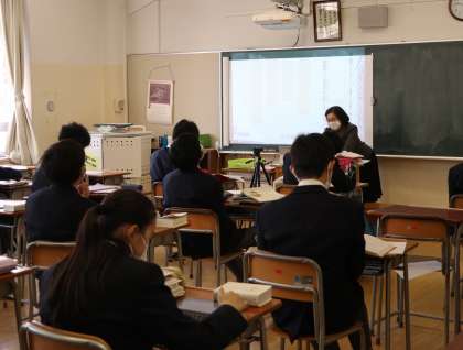 同じく6時間目には、2年生は国語で漢文の授業をしていました。3年生は地下体育館で、男女共修で柔道の授業をしていました。コロナ対応でお互いに組んでの練習ができないのが残念です。