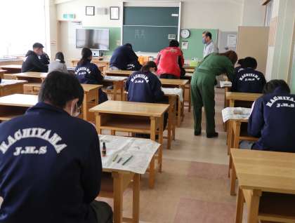 2月9日(火)1時間目の風景一 公開日 2021/02/09 更新日 2021/02/09 お知らせ 本日もきのうと同じように冬晴れの寒い天候になっています。1時間目には、I組は美術の授業で彫刻の作品を作成していました。1年生は英語の授業をしていました。