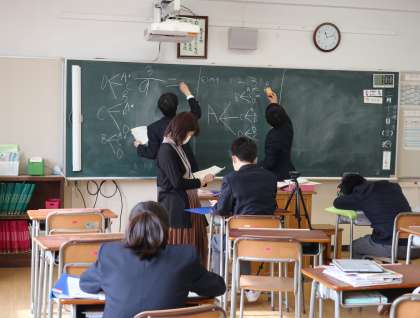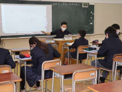 同じく3時間目には、2年生は数学の授業で確立の学習をしていました。校内研修の一環で研究授業の形で実施されました。