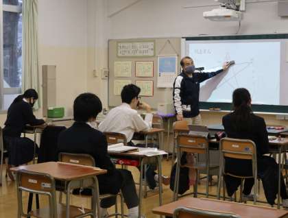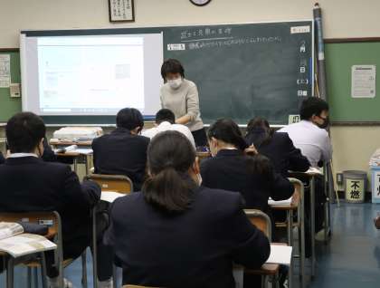 3時間目には、I組は数学、1年生は社会の学習をしていました。社会では歴史的分野で鎌倉時代の武士と民衆の生活について学習していました。