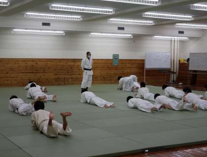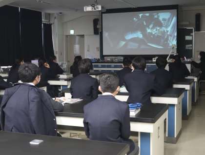 同じく3時間目には、2年生は体育、3年生は理科の授業をしていました。体育は男女共修で柔道の練習をしていました。外はだんだん激しい雨になってきています。