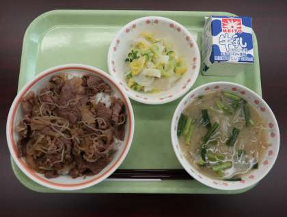 2月17日(水)給食 公開日 2021/02/17 更新日 2021/02/17 お知らせ 本日のメニューは、牛丼、かぶの塩もみ、味噌汁でした。本日の牛肉は和牛肉で、本来なら高級店に提供されるクラスの肉になります。新型コロナの影響で訪日外国人が減るなどして、高級和牛肉の消費が落ち込んだことを受けて、国の補助金を使っての給食への提供となりました。