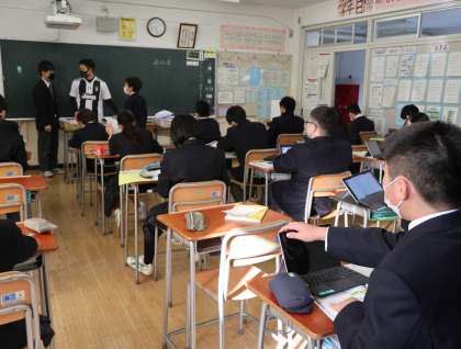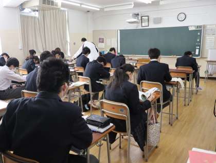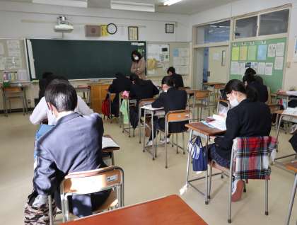 本日は雲一つない快晴で気温も高くなっています。予報ではきのうよりさらに気温が上がり、5月上旬並みになるということです。朝学活では、1〜3年生は朝学習の時間として各自が水曜日から実施される後期期末考査に向けて勉強していました。あすの祝日も有効に使いましょう。
