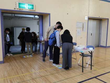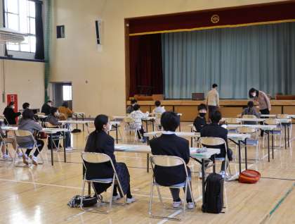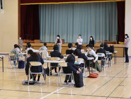 本日は気温も高く陽射しもあり、春本番の天気になっています。本日は新入生登校日で、新1年生が体育館に集合しました。国語と算数の小テストを実施し、入学式についての説明を受けました。