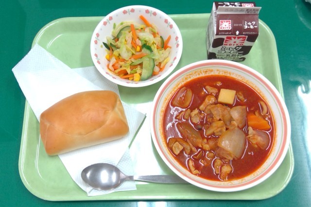 今日のメインは、イタリアの「カチャトーラ」という料理を参考に、鶏肉を旨味たっぷりのトマトソースで煮込みました。さて、私たちにもなじみの深いトマトですが、トマトと聞いて、どんな形を思い浮かべるでしょうか。スーパーや八百屋さんでは、表面がつるんとして、丸に近い形のものが多くみられます。では、イタリアではどのようなトマトが食べられているのでしょう。調べてみると、まるでカボチャのようにごつごつした形や、「牛の心臓」と表現される形、ナスのような形のものなど、さまざまな種類が栽培されているそうです。ふだん見慣れた野菜も、外国での姿を調べてみると面白いですよ。