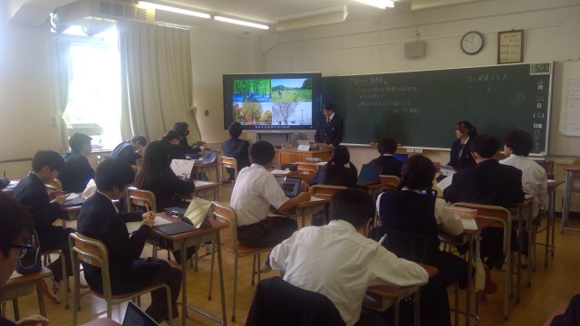 地理の授業で世界の国々から一か所を選んで気候や食べ物など調べたことをCanvaなどのプレゼンテーションアプリを使って全員が発表しました