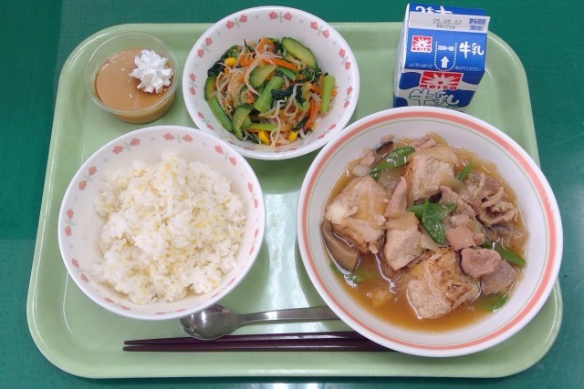 今日、5月1日は、「八十八夜(はちじゅうはちや)」にあたります。2月の立春から数えて八十八日目で、「茶摘み」の歌にもあるように、新茶の収穫が始まる季節となります。お茶の木からは、1年に3回ほど茶葉がとれますが、中でも、この頃に収穫される1年で最初の葉は「新茶」と言われ、それ以降に収穫される葉に比べ、甘みや旨味が格段に多いのだそうです。今日は、デザートにほうじ茶を使ったプリンを作りました。ほうじ茶は、茶葉を炒ったもので、こうばしい香りが特徴です。楽しんで食べてくださいね。