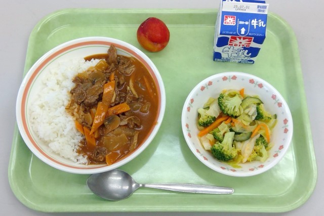 雨が降り、蒸し暑い日となりました。今日の給食は、毎年人気メニューのハヤシライスを作りました。ハヤシライスは、西洋料理の手法をつかった料理ではありますが、発祥は東京の洋食屋さんだと言われています。