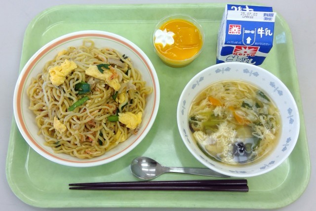 今日の給食は、東南アジアの国・タイの料理から、焼きそばの「パッタイ」を作りました。パッタイは、直訳すると「タイ炒め」という名前で、タイではお米の麺で作られます。ほかの多くのアジアの国々と同様に、タイにもお米を食べる文化があります。日本のお米と比べてさっぱりとした食感のタイ米は、炊いておかずと一緒に食べるのはもちろん、米粉に加工して麺の形にしたり、デザートに使ったりと、幅広い食べ方がされています。給食では、大量のお米の麺を炒めるのは難しいため、いつもの焼きそば麺を使いました。