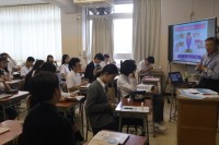 7月16日(水)、「小中連携の日」の今日、鉢山中のテーマ探究の授業を猿楽小、長谷...