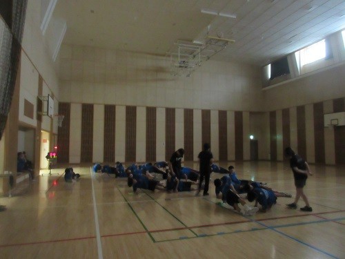 写真は薄暗くても頑張るバトミントン部。エアコンは効いています。