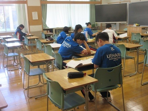 外は暑くても、本校は構造上、廊下も涼しく快適です。休み時間も廊下で過ごす子が多くいます。明日から定期考査、自習している子もいました。暑さに負けず校庭で遊んでいる子もいました。